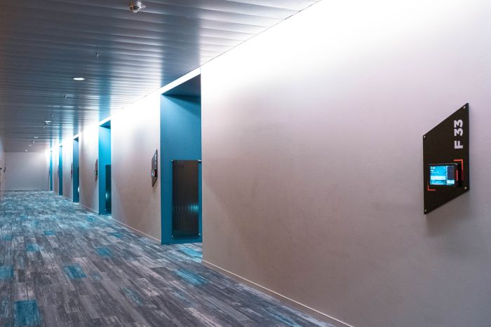 Pour ce faire, nos spécialistes ont procédé à l’installation d’écrans 10’’ devant chaque salle avec LED d’indication libre ou occupé couplé à un système centralisé de récapitulatif de l’état des salles. Depuis le hall, en arrivant devant chaque salle ou depuis un ordinateur, chaque visiteur a facilement accès à l’information dont il a besoin.
