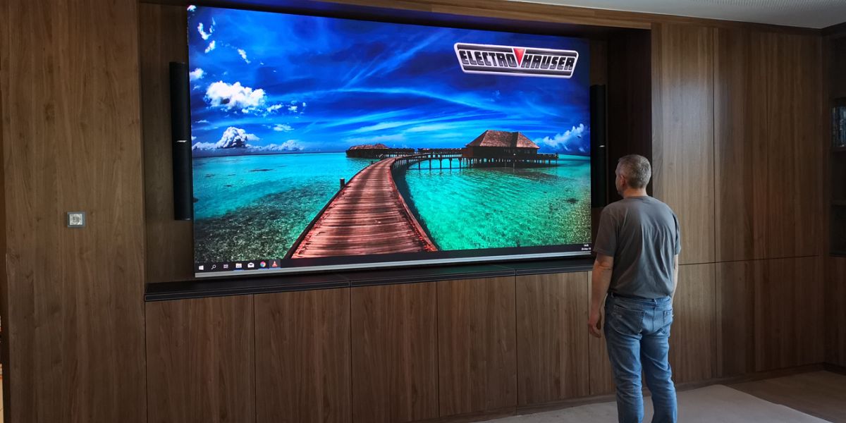 L’équipe d’Electro Hauser construit un videowall sur–mesure pour la grande salle de réunion du Foyer Assurances de Leudelange.